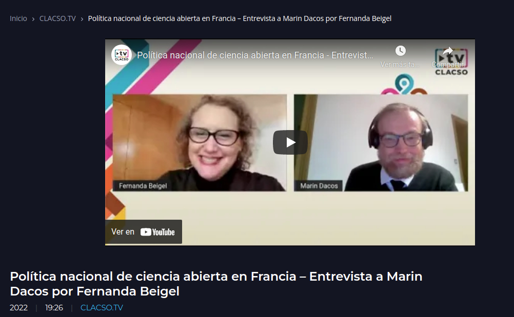 Política nacional de ciencia abierta en Francia : entrevista a Marin Dacos por Fernanda Beigel